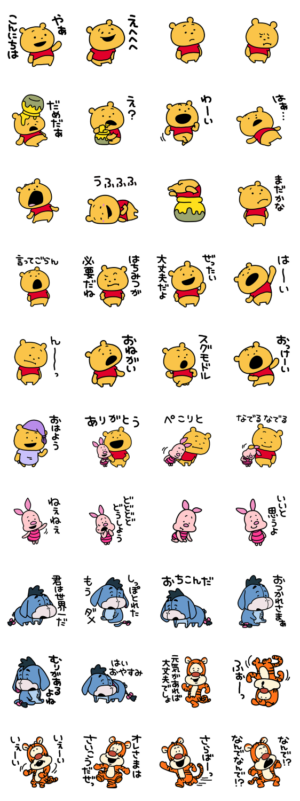 めちゃくちゃゆるいプーさんが可愛いです。仲の良い友達にぽんぽん送りたくなります。