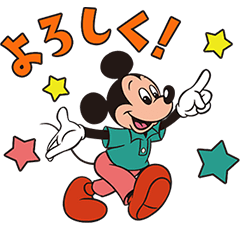 ミッキーが軽快に動いてよろしくと言っている誰にでも送れるスタンプです。