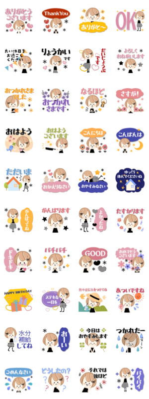 可愛い大人ガールの毎日使える動かないでか文字スタンプです。