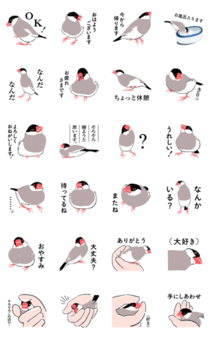 文鳥のスタンプです。眠そうなの多めです。fumi-buncho より発売