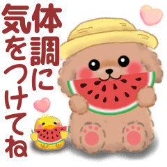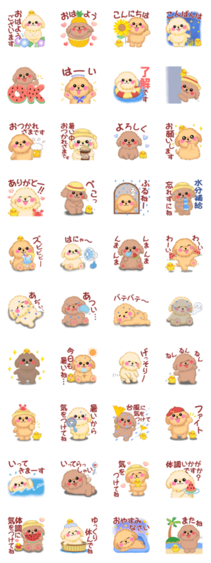 「かわいいトイプードル」の夏の日常に使えるスタンプです!めぐみん より発売