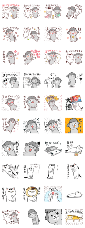 白い猫と灰色の犬のスタンプである……基本的には。絵柄はエッセイ漫画でよくあるタイプの雰囲気。またシリーズものだがメッセージの汎用性はそれなりにある。