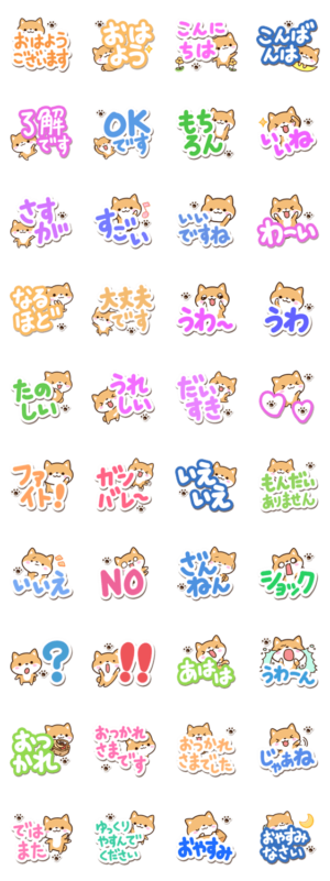 ちいさい柴犬の豆柴。『まめシバ』の【絵文字】と【着せかえ】もあります。文字が大きく選びやすいイヌスタンプ。いぬ好きの方、コーギーを飼っている方にぜひ。【かたこ】かたこ より発売