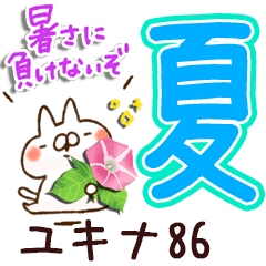 ユキナ/ゆきな専用86。ねことうさぎの名前スタンプ/夏/挨拶/夏休み/デカ文字/大人可愛い/敬語/猫/花火/暑い/猛暑/気づかい/体調/海/熱中症/天気/台風/山田まぽん作