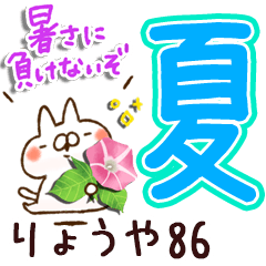 りょうや/リョウヤ専用86。ねことうさぎの名前スタンプ/夏/挨拶/夏休み/デカ文字/大人可愛い/敬語/猫/花火/暑い/猛暑/気づかい/体調/海/熱中症/天気/台風/山田まぽん作