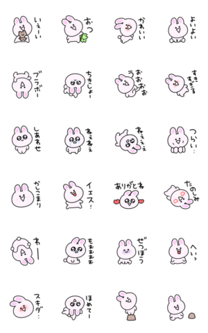 感情がすごいシュールなミニうさぎの動くスタンプです。eribo より発売