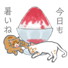 近所に住むノラ猫ちゃんたちをスタンプにしました。夏らしいお菓子に囲まれたネコちゃんたちのスタンプです。