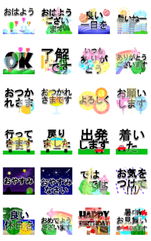 絵が飛び出す よく使う日常会話 デカ文字 スタンプ画像一覧