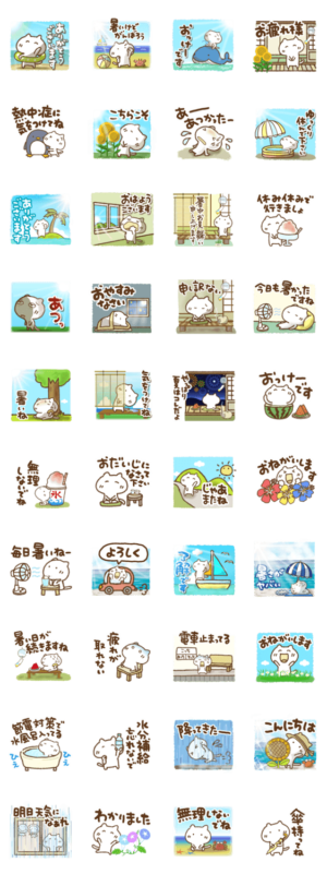 夏のラインナップが豊富で使いやすいスタンプです。どれも可愛くて癒されますね。