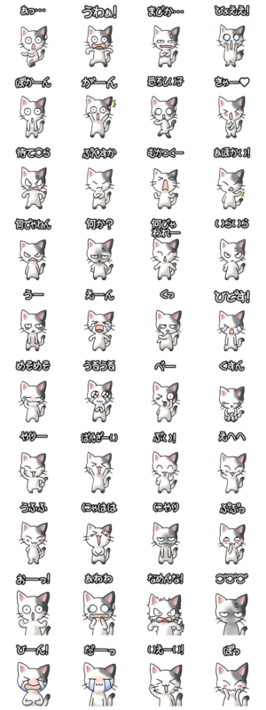 このスタンプは「猫ねこにゃんこ その2(白)驚怒哀楽」の色替えです。 ※このスタンプはトークルームで大きく表示されるBIGスタンプです。たたら より発売