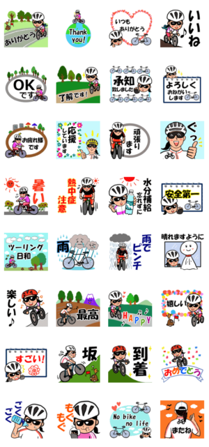 自転車が好きな女性スタンプ第二弾。(男性版も販売中です)見やすいデカ文字での挨拶付きで便利。ロードバイク、サイクリング、自転車乗り、ロードレーサー、サイクルスーツ