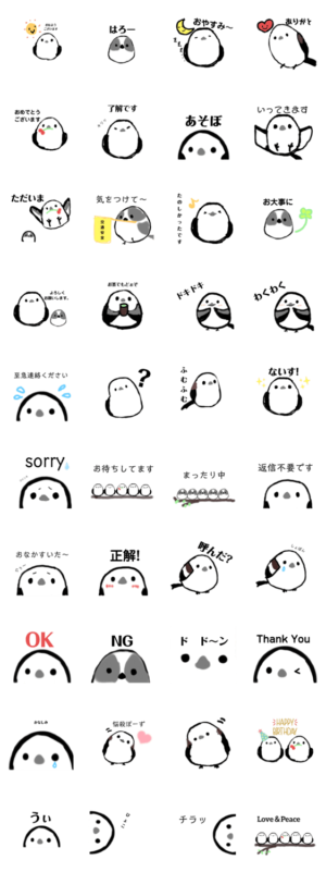 スタンプ初挑戦。雪の妖精シマエナガが大好きで自分でスタンプ作ってみました。指で描いてるので雑ですいません。ちょっとした日常会話に使えるはずです。ししこま。 より発売