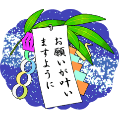 たなばた祭りで使われる笹を描きました。短冊に書いたお願いが叶いますように。ヨシダアカリ より発売