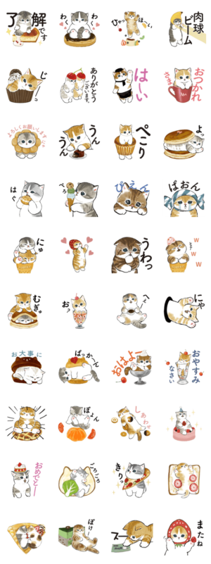 ベタベタにゃんこはお風呂行き。にゃんこスイーツ! × LINEバイト無料コラボスタンプの再リリースが含まれています。mofusand より発売