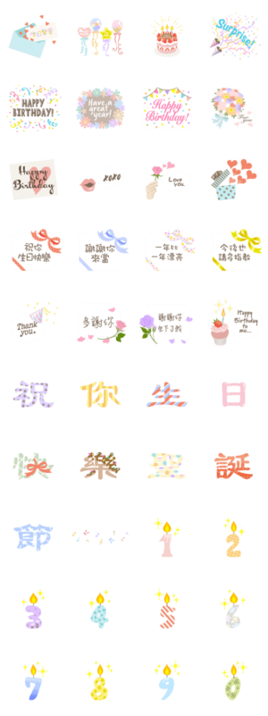 [北京語] 誕生日おめでとう/パステル絵本 スタンプ画像一覧