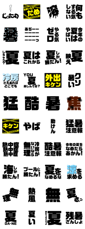 猛暑、酷暑、熱中症に負けず夏を楽しもう! スタンプ画像一覧