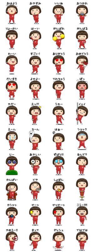 芋ジャージの女子の桜中学校バージョン『絵本編』。クレヨンやパステルで描いたようなタッチのBigスタンプです。 ※このスタンプはトークルームで大きく表示されるBIGスタンプです。くーが より発売