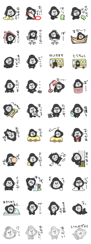 もっと過保護に育ったシュールなミニゴリラのスタンプです。eribo より発売