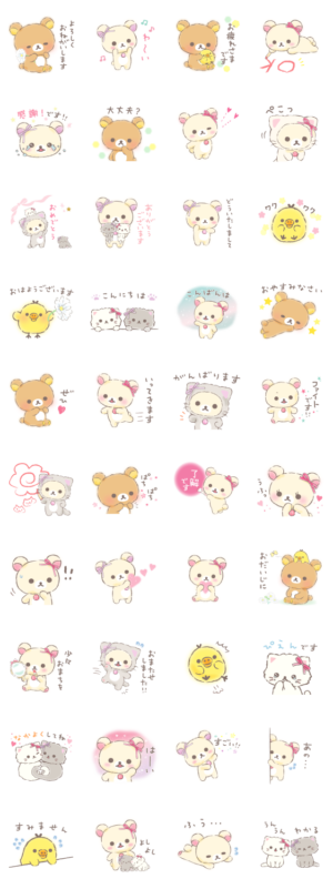パステルカラーで描かれたコリラックマ多めのスタンプです。ゆるかわいいスタンプをラインに飾って癒されましょう!