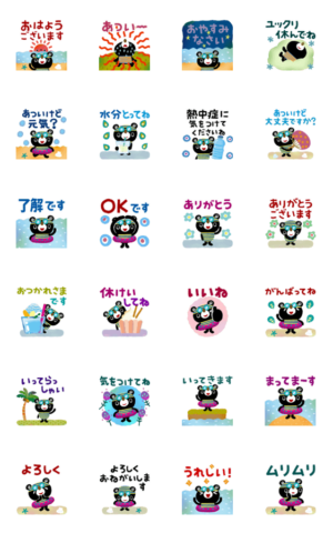 ブラクマの夏スタンプです。 おはよう、ありがとう、よろしくなど毎日使えるフレーズがイッパイ。KAKKOBOX より発売