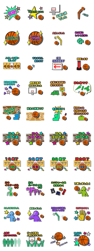 バスケ好きが必要とする内容のスタンプ。バスケ好きをサポートする方々、ミニバスサポート保護者様、バスケ練習場所取り係さん、バスケの連絡に便利なスタンプ。