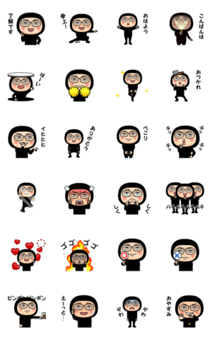 黒の全身タイツを身にまとった、メガネ顔のスタンプ。くーが より発売