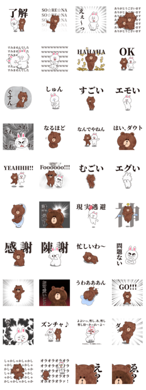 ブラウン&コニー*達筆な適当返事 スタンプ画像一覧