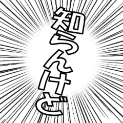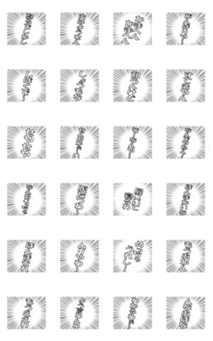 漫画のセリフのようなでか文字が画面一杯に飛び出して回転!マンガのような抜き文字とまんがのような集中線を使ったポップアップスタンプ。G-flash より発売