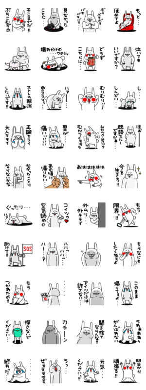 全力でうざい全力でおちょくるあざとかわいいうさぎのストレスがたまってヘラっています。誰か助けてください。膨大な仕事、人間関係で悩む胃が痛いあなたに捧ぐスタンプ。