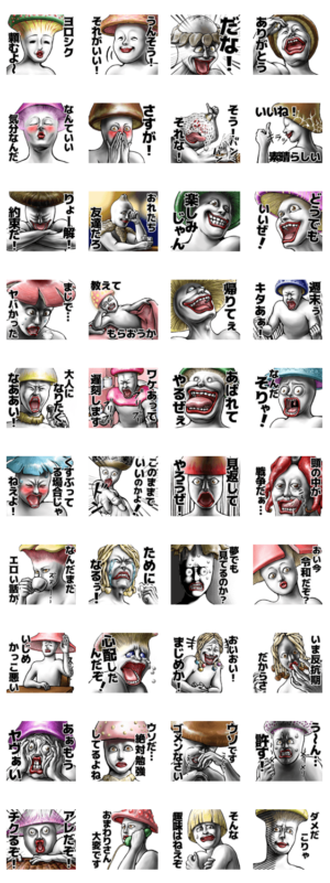 表情全開13-15 キノコ ver.7 学生向け スタンプ画像一覧