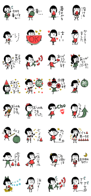 すいか娘の大人かわいい、毎日使えるスタンプです♡motto より発売