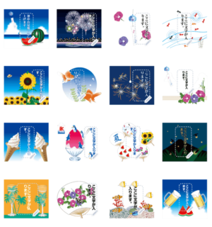 書き込める夏のタンプ。暑中見舞い、残暑見舞いなどに 金魚、スイカ、朝顔、かき氷、花火、ひまわり、蛍、ビール、ソフトクリーム 現在この商品は一部のスマートフォン版LINE 10.3.0以上のトークルームでのみ使用できます。動作環境の最新情報はヘルプをご確認ください。yururi より発売