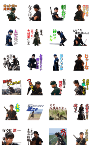 映画「キングダム2 遥かなる大地へ」山﨑賢人演じる主人公・信の劇中カット満載の公式スタンプ全24個です。スターダストプロモーション より発売
