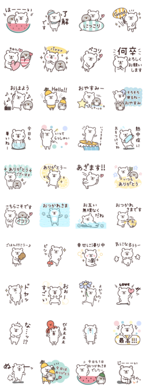 しろくまとペンギンの毎日使えるスタンプ♡夏に使える言葉も入っていますchaco より発売