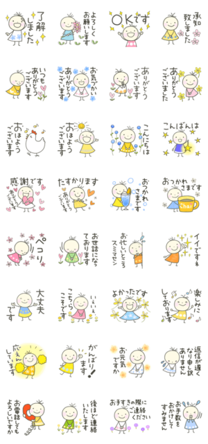 ほんわか優しいナチュラル&癒し系の女の子スタンプ。丁寧な日常 敬語で仕事/ママ友/年上/先輩/PTAなどでおススメ。毎日便利に使えます。感謝のスタンプ多めOvee より発売