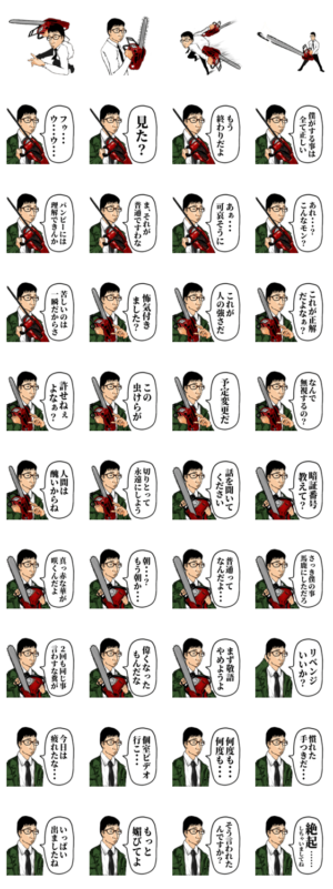 【ネタ/煽り/どや顔/面白い/愛/返信/便利/使いやすい/ムカつく/友達/感想/適当/流行れ/バトル/怖い/意味不明/チェーンソウ/チェーンソー/サイコ/かっこいい/イケメン】ヤバいスタンプ屋さん より発売