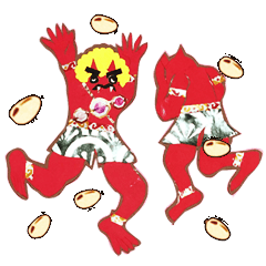 豆をまかれて逃げ回る鬼さんたちの様子や 節分のアイテムをスタンプにしましたMasa55 より発売