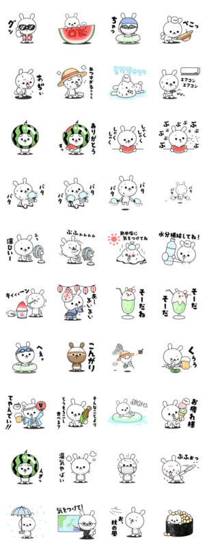 ひねくれうさぎのあっつい夏 スタンプ画像一覧