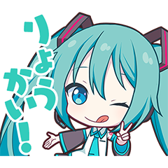この初音ミクちゃんのスタンプかわいいです。「りょうかい!」のフレーズはよく使うので便利ですね。