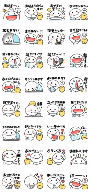 棒人間のちびマロが毎日のご挨拶♡起きた時、寝る前の会話に使える言葉がたくさん入ったセットです。ぴよたぬき♡ より発売