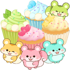 たくさんの美味しそうなスイーツに心躍りまくる素敵なスタンプです。リス達にも癒されますね。