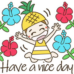 ポニーテールの大人女子おちゃめの夏の毎日使える気づかい編。文字の枠は白にしてありますので黒い背景でも大丈夫です。(友達、家族、仲間、グループ、便利、挨拶)