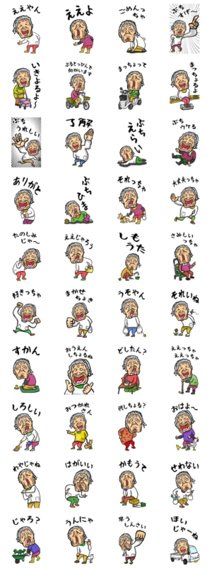 山口弁おばあさんの大きなスタンプ【BIG】バージョンです。大きな文字で読みやすく、見やすいスタンプになってます。全国47都道府県方言スタンプ販売してます。 ※このスタンプはトークルームで大きく表示されるBIGスタンプです。Brody Machine より発売