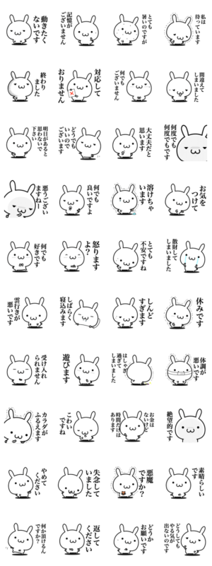 敬語のあまり動きたくないウサギのスタンプです。hoshico より発売