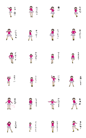 パッと見ダサいけど、昭和味があってかわいいスタンプ(芋ジャージ特別編6)いつもの芋ジャージを着替えかわいく、面白く仕上がってます