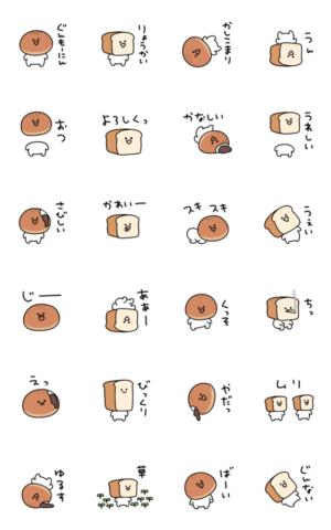クレイジーに動くシュールなミニあんぱん&ミニ食パンのスタンプです。