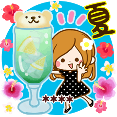 夏から残暑まで毎年使えるカスタムスタンプです♡ 落ち着いた色合いと黒の水玉ワンピースで大人可愛くしました(☆注意/こちらは発売したスタンプのカスタム再編集版です)