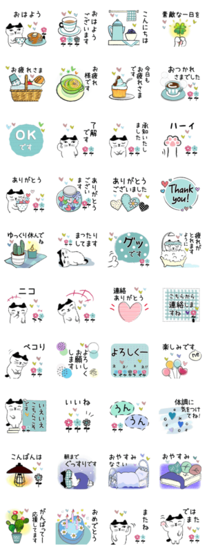 控えめで落ち着いた大人の猫さん、毎日を穏やかに過ごせる使いやすいスタンプです。taemama より発売