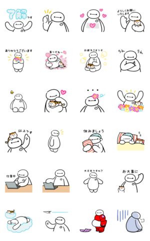 ベイマックスのスタンプ、ほっこりします。どんな格好していても癒されますね。