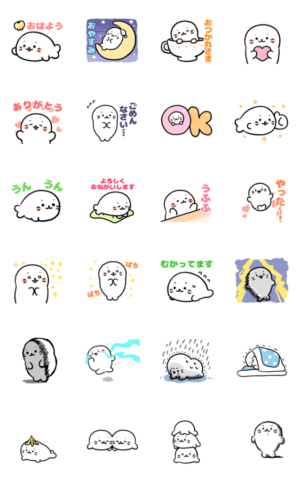 かわいく動くあざらしが可愛い〜!癒されるスタンプです!毎日使おっと!